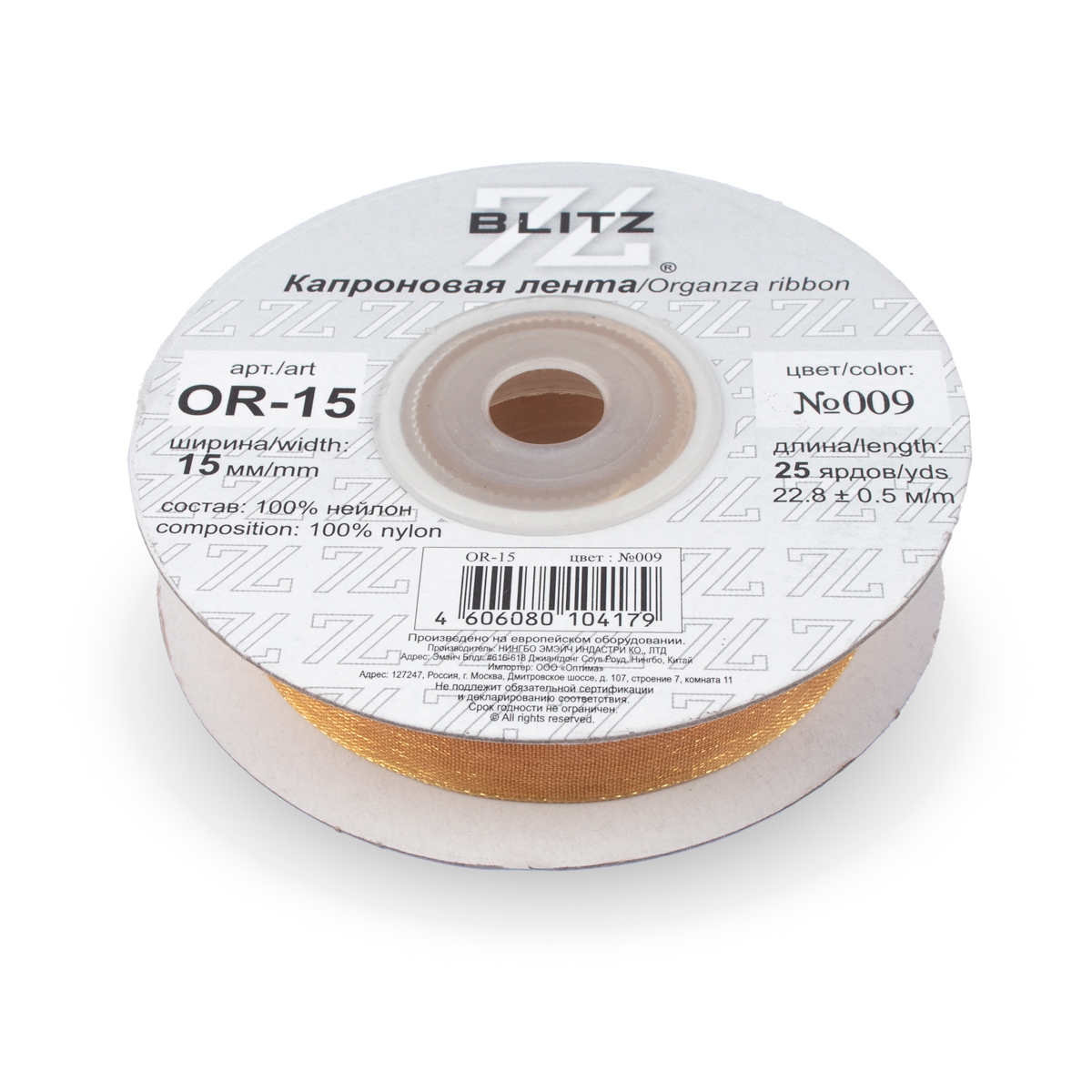 лента 15 мм OR-15 BLITZ 22.8 м ±0.5 м №009 рыжий