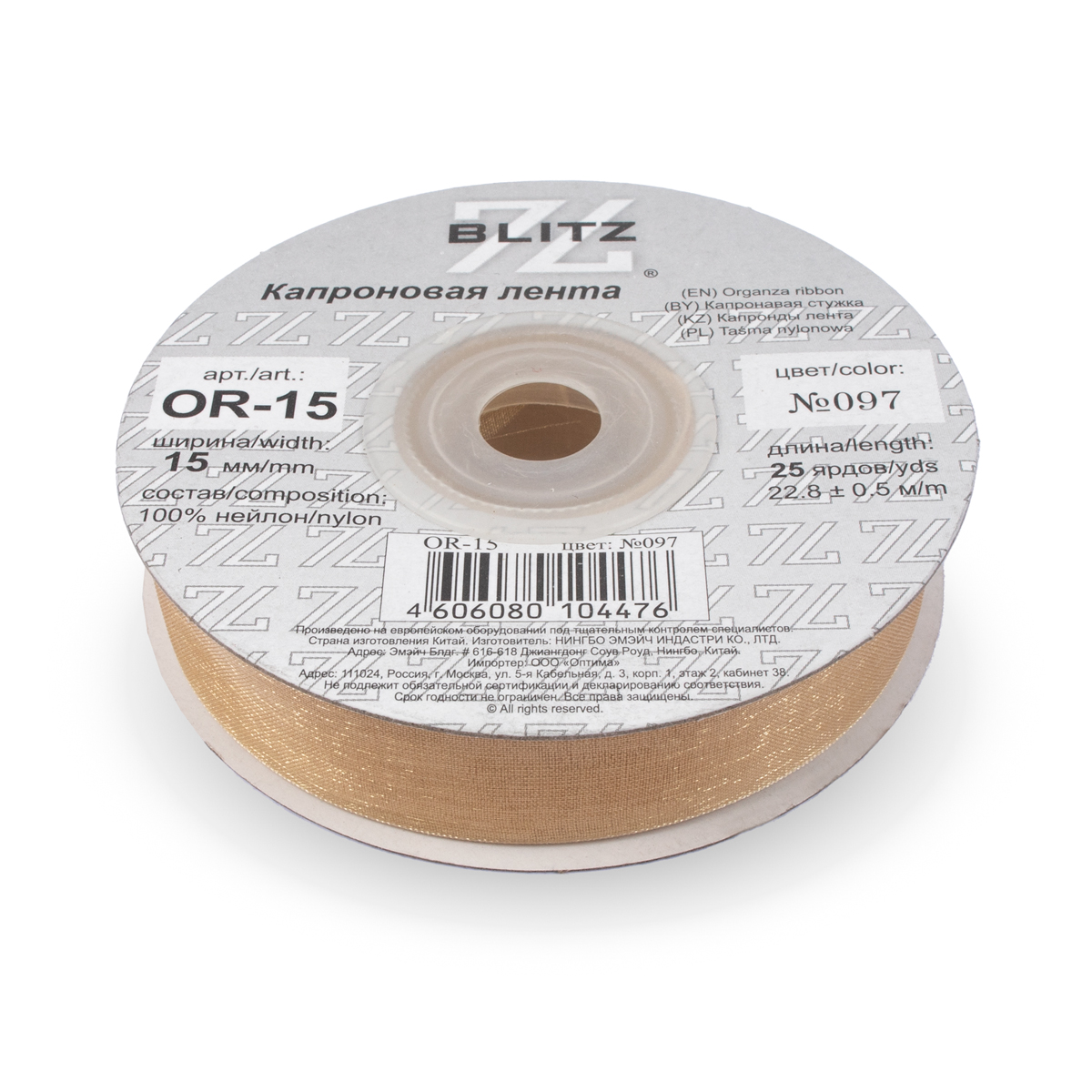 лента 15 мм OR-15 BLITZ 22.8 м ±0.5 м №097 св. персиковый