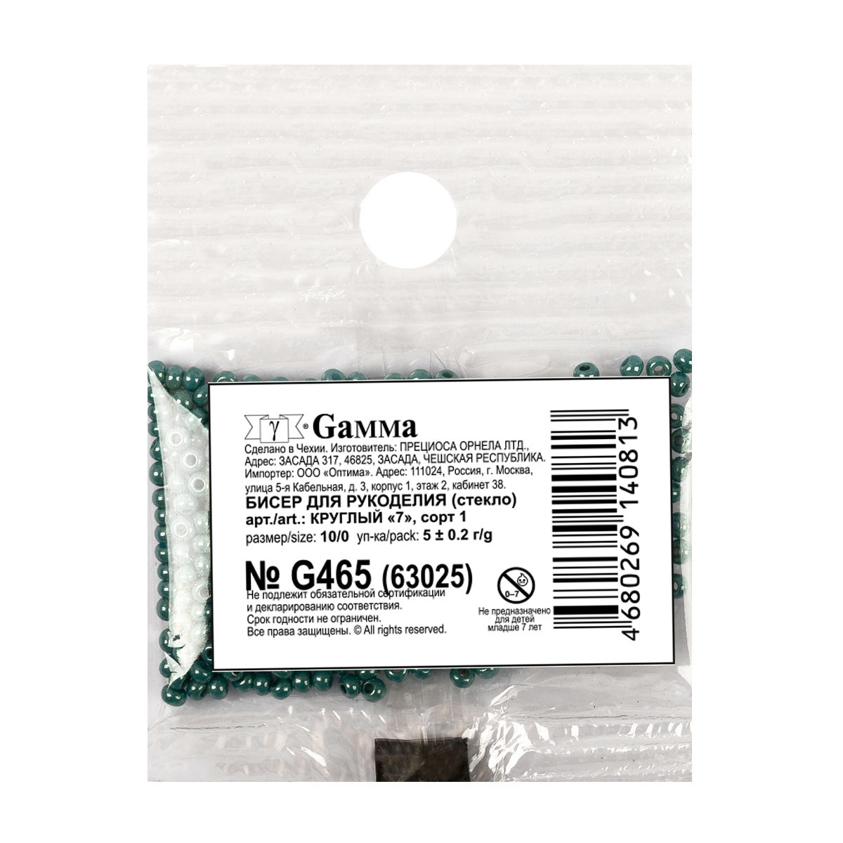 Бисер Чехия Preciosa круглый, фасовка 5 грамм. Первый сорт бисера. Фасовка Gamma