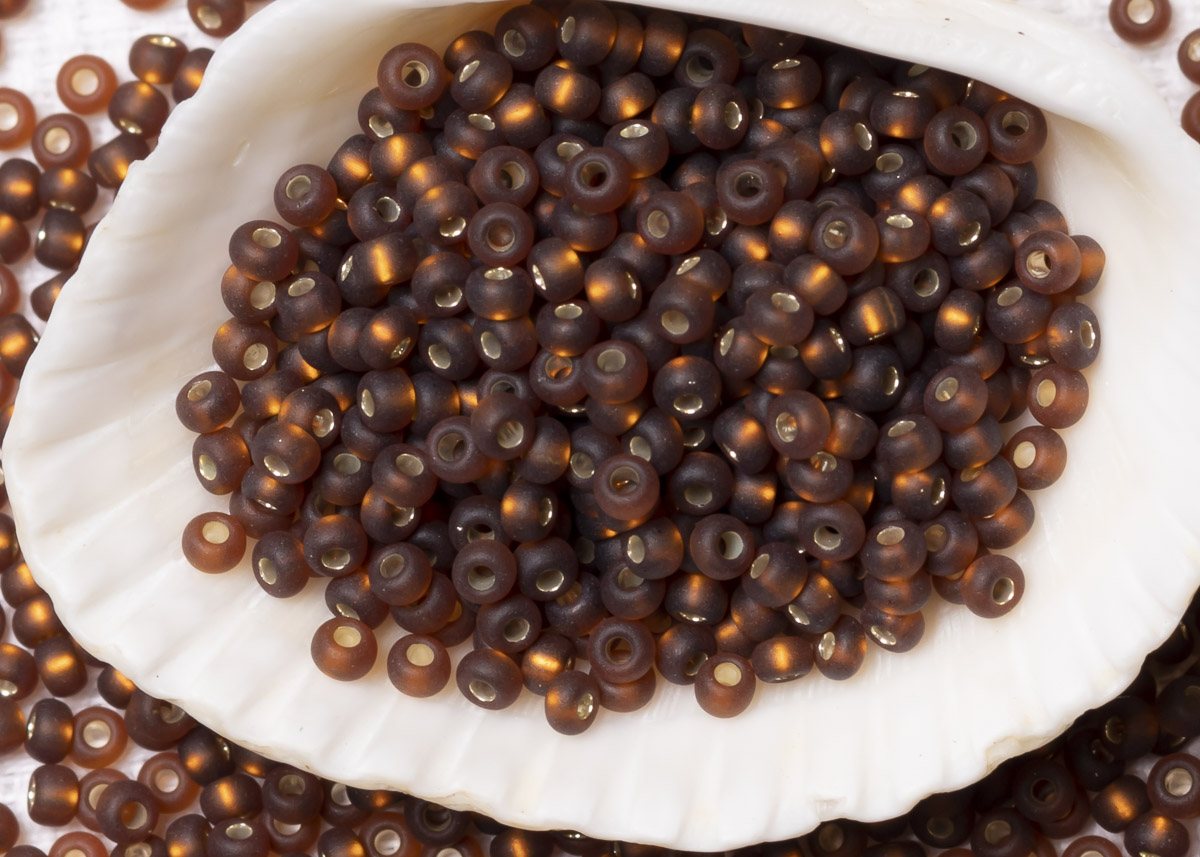 Бисер Чехия круглый 10/0 50 г 17110m прозрачный коричневый с серебряным прокрасом матовый