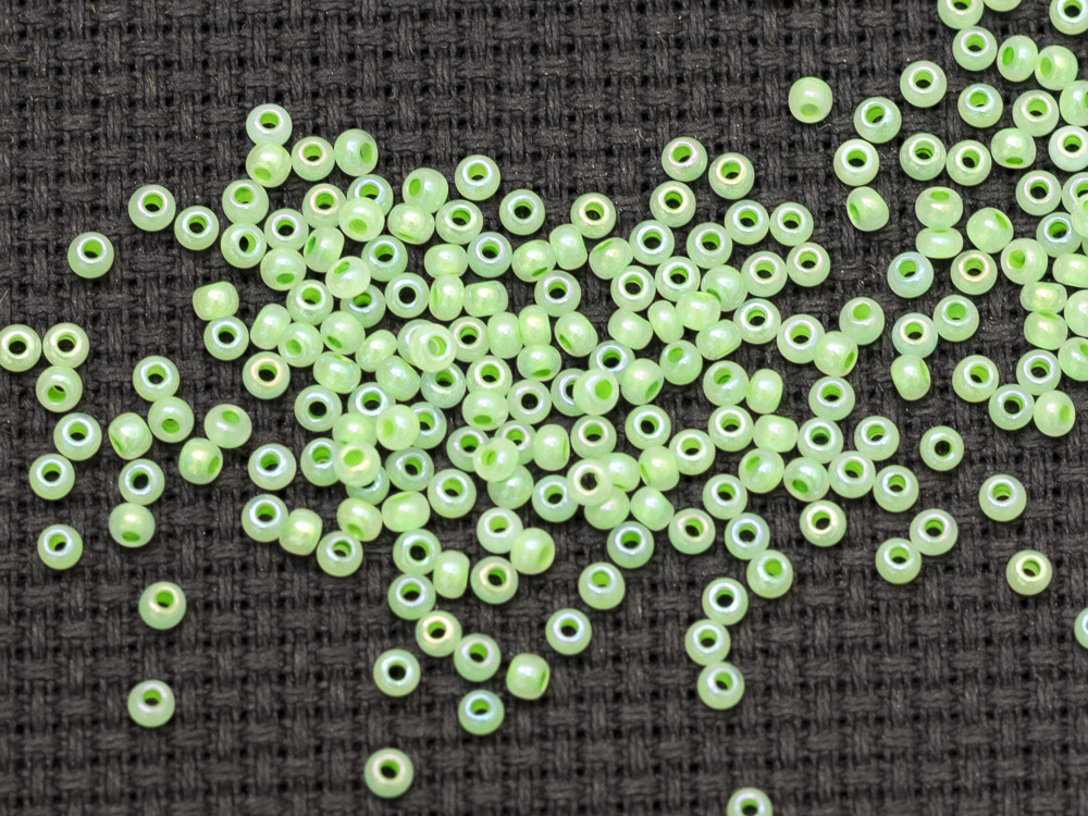 Бисер Чехия круглый 10/0 500 г 57556 салатовый непрозрачный радужный
