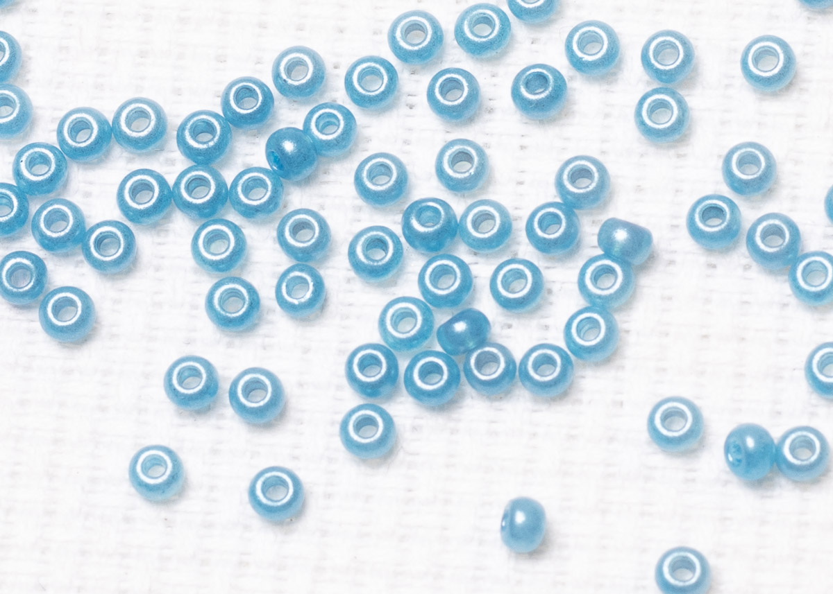 Бисер Чехия круглый 10/0 50г 17765 голубой с бирюзовым оттенком окрашенный алебастр