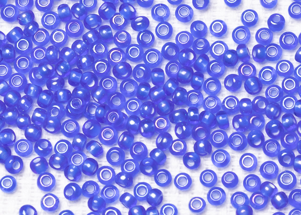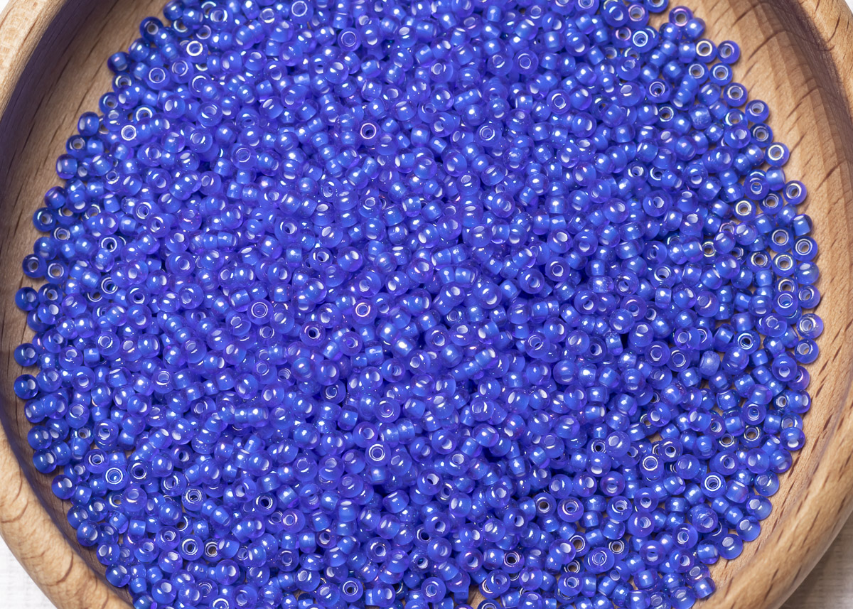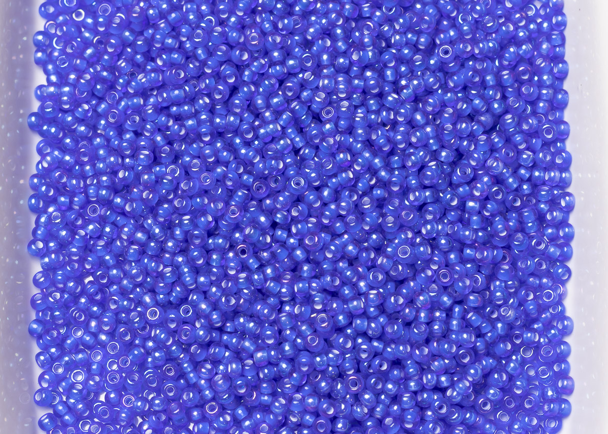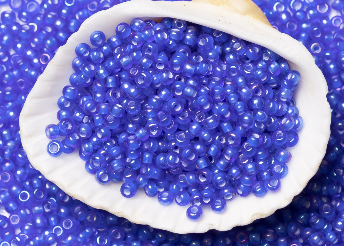 Бисер Чехия круглый 10/0 50г 35058 синий радужный белая линия внутри