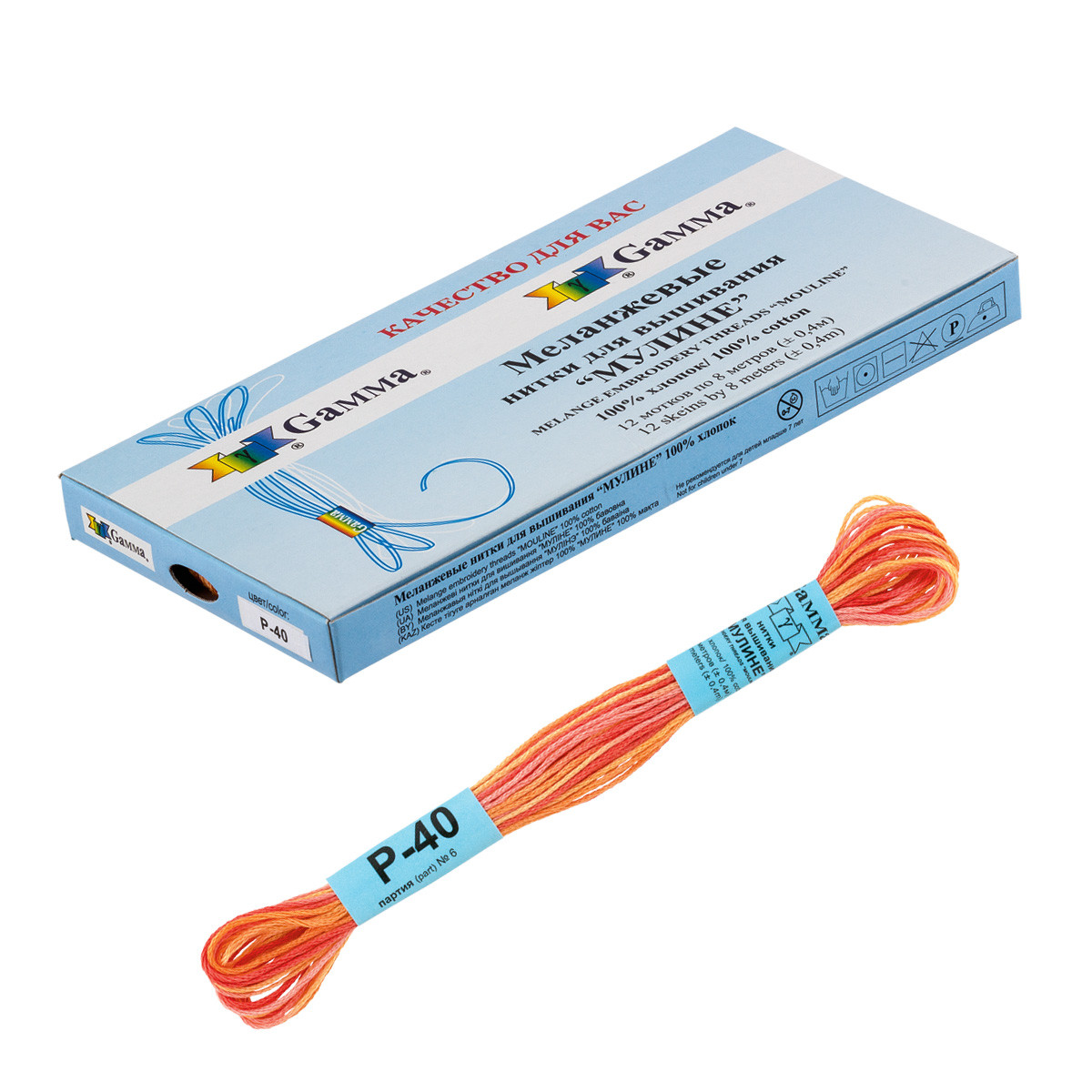 Нитки для вышивания " Gamma" мулине меланж 100% хлопок 8 м Р- 05 алый- коричневый